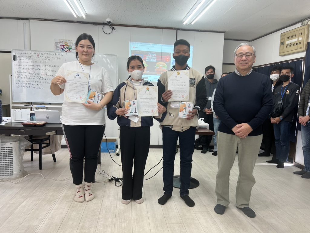 表彰された3名は周りをリードして、他の実習生の生活面、学習面をきめ細かく丁寧に