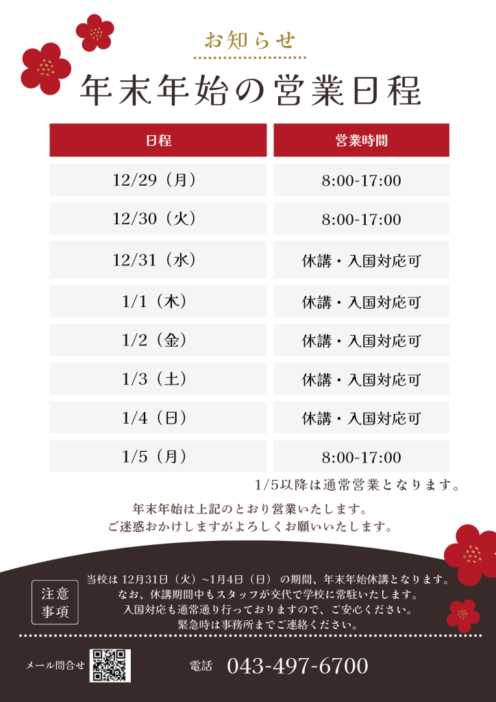 休業期間中も 入国対応は可能 でございますので、必要な際は事前にご連絡いただけますと幸いです。